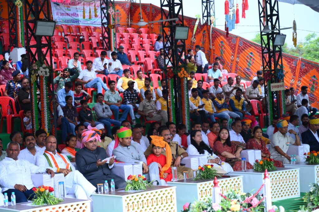 मुख्य अतिथि सहकारिता एवं नागरिक उड्डयन मंत्री श्री गौतम कुमार दक ने अपने संबोधन में स्वतंत्रता सेनानियों को श्रद्धांजलि देते हुए कहा कि “आजादी का यह पर्व उन वीर शहीदों की याद दिलाता है, जिन्होंने देश की स्वतंत्रता के लिए अपना सर्वस्व न्यौछावर कर दिया।” उन्होंने प्रधानमंत्री श्री नरेंद्र मोदी एवं मुख्यमंत्री श्री भजनलाल शर्मा द्वारा संचालित जनकल्याणकारी योजनाओं का उल्लेख करते हुए बताया कि इनसे अंतिम पंक्ति में खड़े व्यक्ति तक लाभ पहुँच रहा है।