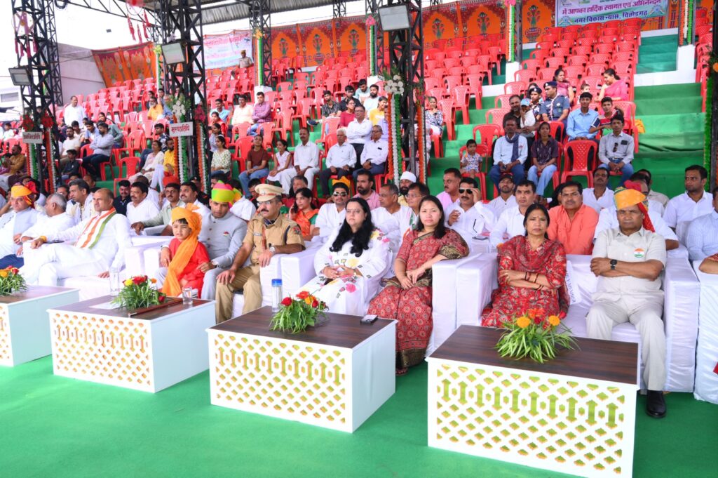 चित्तौड़गढ़, 15 अगस्त। जिला मुख्यालय स्थित इंदिरा गांधी स्टेडियम में 79वां स्वतंत्रता दिवस जिला स्तरीय मुख्य समारोह उत्साह, गरिमा और देशभक्ति के उल्लास के साथ सम्पन्न हुआ। समारोह के मुख्य अतिथि सहकारिता एवं नागरिक उड्डयन मंत्री श्री गौतम कुमार दक ने राष्ट्रीय ध्वज फहराया और परेड की सलामी ली।